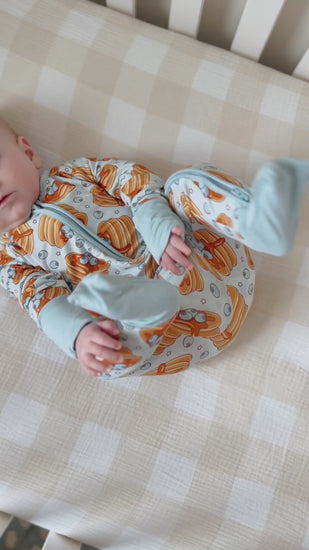 Get ready for cozy mornings with the Karissa Zippy Romper, inspired by the sweet comfort of Maine blueberry pancakes. Made from soft bamboo fabric, this playful romper keeps your little one snug and stylish all day long. Easy to zip on and off, it’s perfect for quick changes and endless adventures.