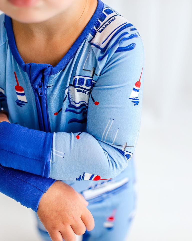 Set sail for sweet dreams in our KEITH Baby bamboo pajamas, featuring an exclusive lobster boat and buoy print inspired by coastal living. Made from buttery-soft, breathable bamboo fabric, these PJs keep little ones cozy year-round—cool in the summer and warm in the winter.